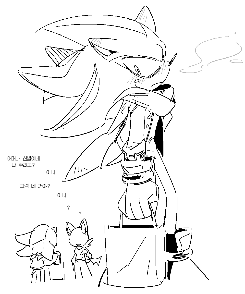 safe35452 artist:9scati6 rouge the bat1715 shadow the hedgehog5776 bat468 hedgehog6818 20252832 alternate outfit1020 bag139 clothes1504 coat119 dialogue2515 duo11367 duo focus91 frown4376 holding something3099 korean text157 line art1526 looking at viewer7643 monochrome1869 question mark393 scarf504 simple background14147 standing10096 text530 white background6730