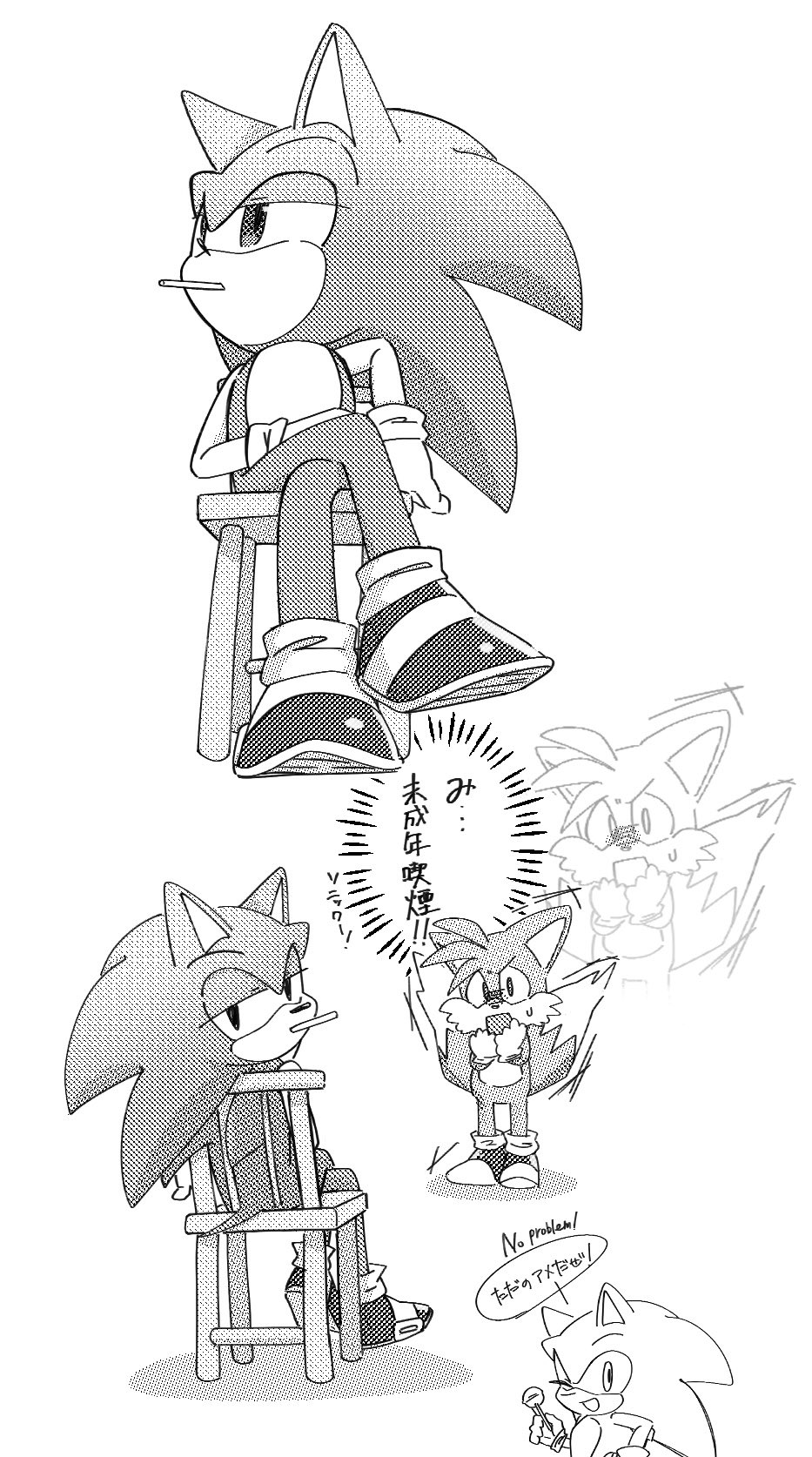 safe36558 artist:oudooooon42748 miles "tails" prower9049 sonic the hedgehog13235 20253352 candy32 chair86 comic694 duo11947 food414 greyscale868 japanese text395 lollipop40 looking at them2062 monochrome2074 mouth open5488 simple background14888 speech bubble1359 standing10463 white background7264