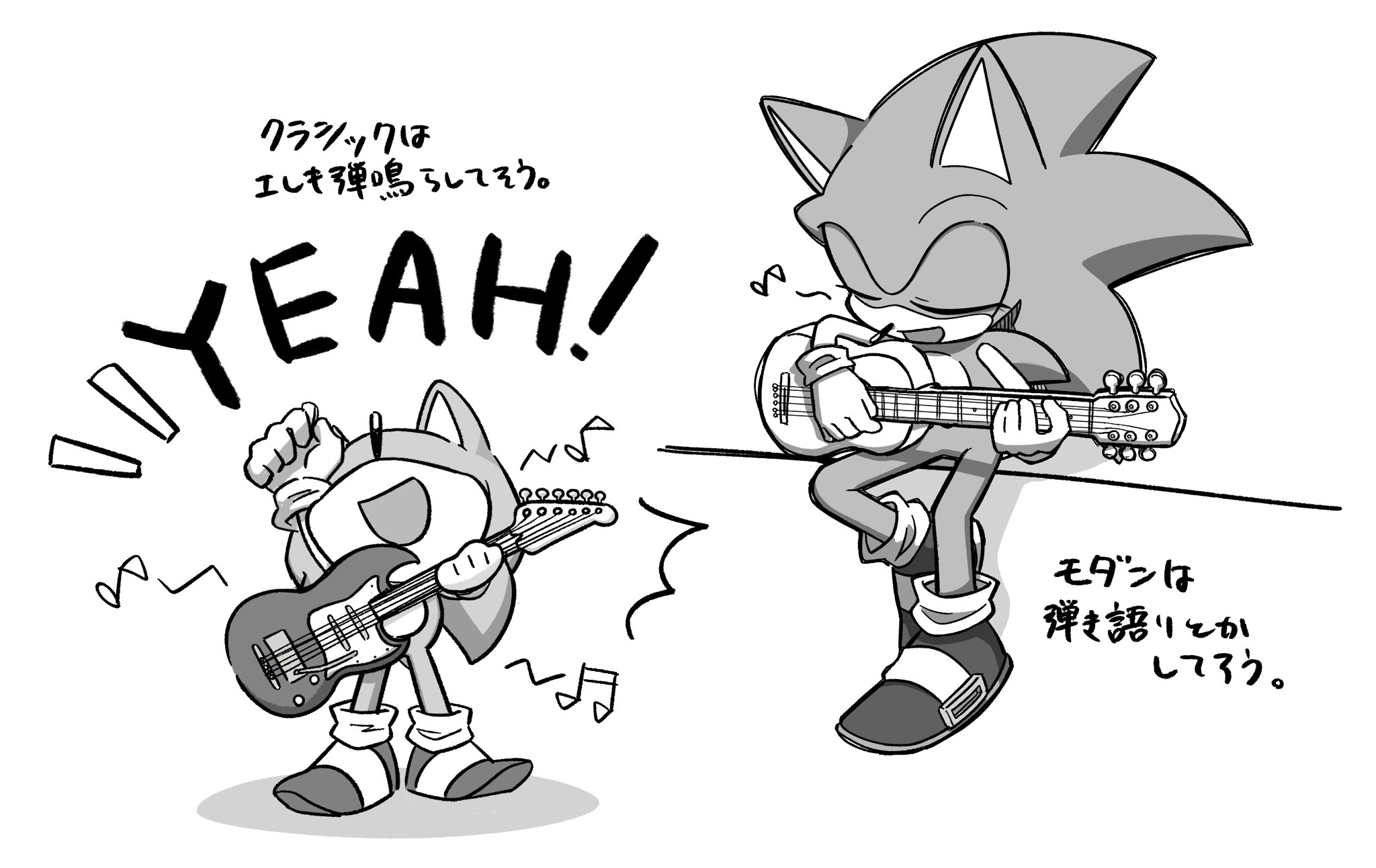 safe36558 artist:oudooooon42748 sonic the hedgehog13235 20253352 arm up38 eyes closed4579 greyscale868 guitar74 holding something3294 japanese text395 monochrome2074 mouth open5488 playing music15 simple background14888 singing71 sitting2192 smile13650 solo16698 standing10463 white background7264