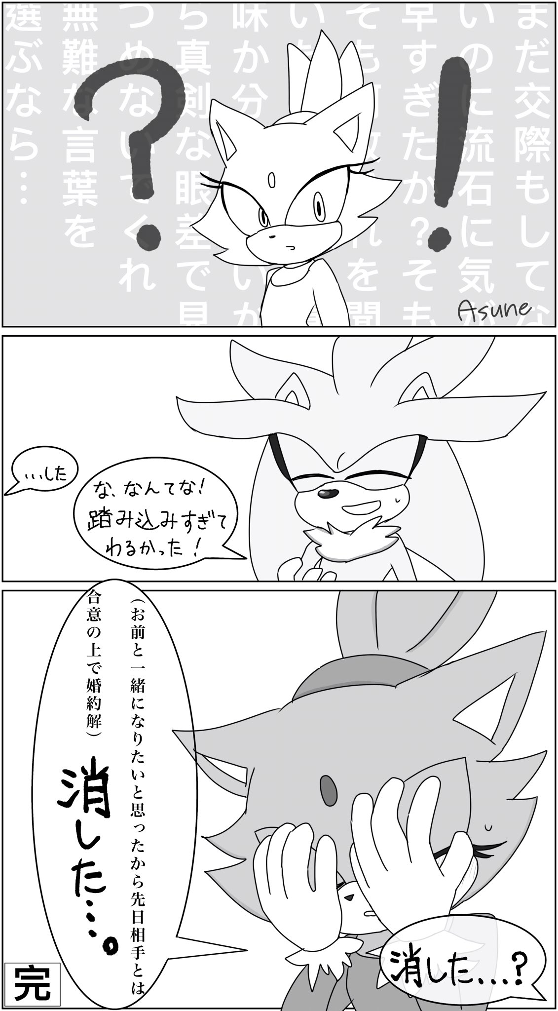 safe37080 artist:asune_snare82 blaze the cat3586 silver the hedgehog1893 20244399 comic731 covering face33 duo12221 eyes closed4660 greyscale913 hands on own face43 japanese text490 monochrome2148 mouth open5629 shipping9802 silvaze65 simple background15198 smile13905 speech bubble1415 straight1435 white background7441
