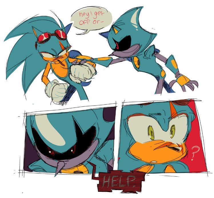 Metal Sonic is now the closest thing Tails has as a comfort, after tails ‘lost’ Sonic and Metal Sonic lost Eggman. He undergoes upgrades ans such by Tails and grows into not a replacement but a figure that is almost needed. But he knows that it’s not him Tails needs