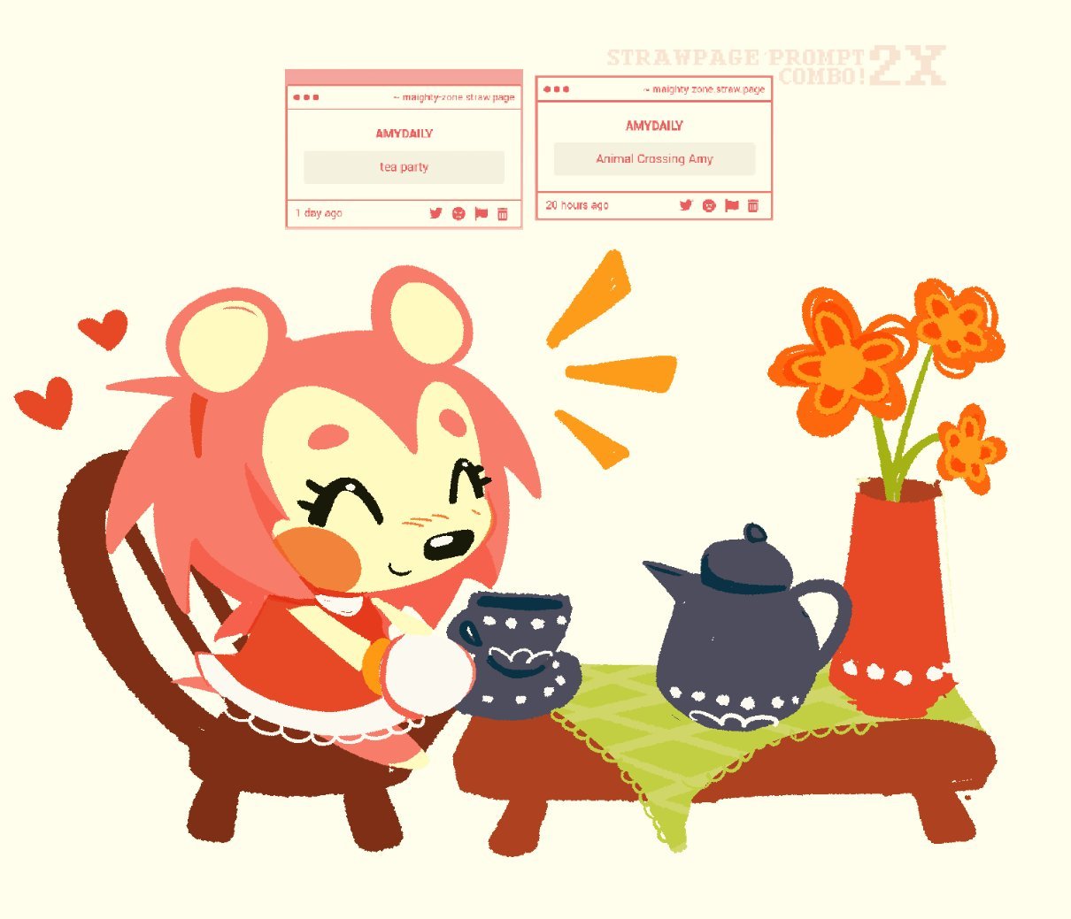 safe38324 artist:amydaily1 amy rose5903 2026389 amybetes369 animal crossing10 beanbrows207 chair103 cup84 cute5747 eyes closed4825 flower677 heart3325 lineless545 no outlines156 plate64 reference inset531 simple background15896 sitting2428 smile14535 solo17493 style emulation251 table134 tea22 tea party5 teapot4 vase1 white background7862