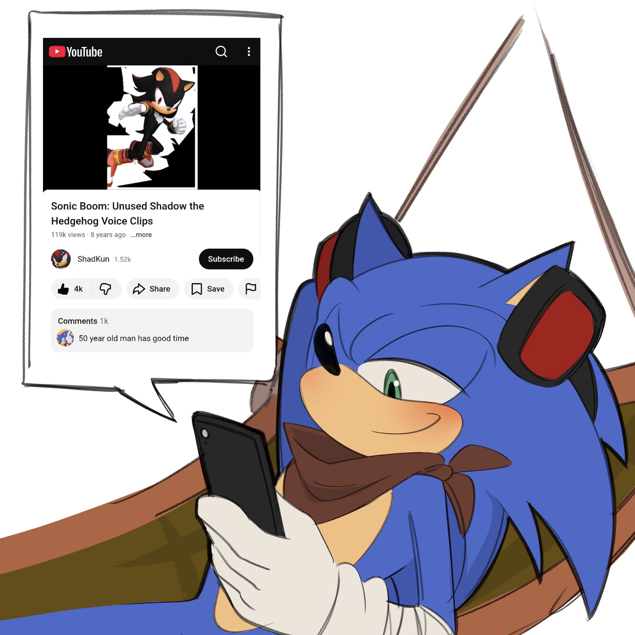 safe38633 artist:tenderandmilder6 shadow the hedgehog6559 sonic the hedgehog14195 2026479 blushing6837 hammock7 headphones105 holding something3804 lidded eyes4200 looking at something319 lying down567 phone147 simple background16151 smile14776 solo17666 sonic boom (tv)545 white background7956 youtube9