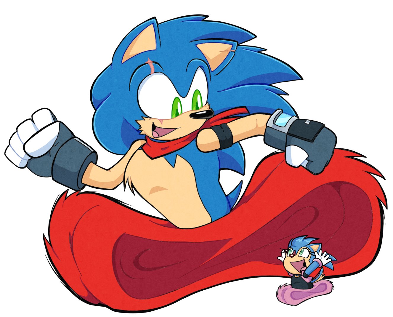 safe39293 artist:tvict10121 sonic the hedgehog14490 oc2673 oc:riri acorn2 chipmunk1049 hedgehog8062 20221530 child412 duo13436 fankid382 father and child66 father and daughter73 female7143 happy286 male7260 parent:sally35 parent:sonic238 parents:sonally9 running677 scar186 scarf599 simple background16651 white background8185