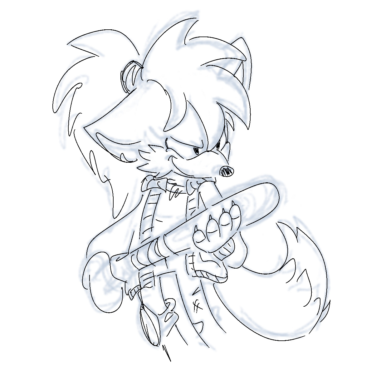 safe40344 artist:jenzel9 fiona fox195 fox2861 20232820 alternate hairstyle118 alternate outfit1547 baseball bat24 claws568 floppy ear96 holding something4315 jacket1148 jeans55 kneepad1 line art1751 looking offscreen4983 monochrome2532 pants623 ponytail171 sketch2003 smile16144 solo18814 standing11910 weapon262