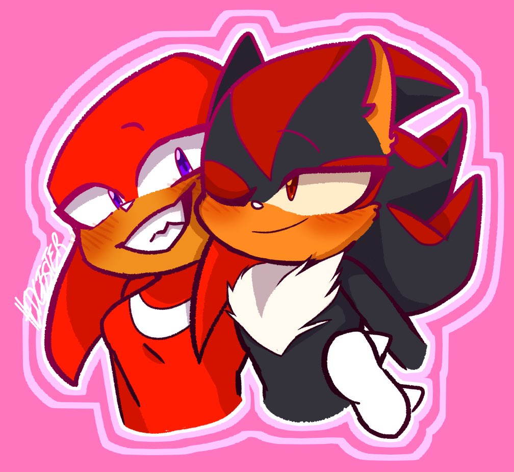 safe35594 artist:hedgester18 knuckles the echidna2177 shadow the hedgehog5809 20244301 blushing6329 bust354 cheek fluff160 chest fluff728 clenched teeth1804 cute5527 duo11435 ear fluff670 gay4967 knucklebetes86 knuxadow67 looking at them1938 looking at viewer7658 one eye closed718 outline1727 pink background449 shadowbetes384 shipping9435 signature5872 simple background14242 smile13176