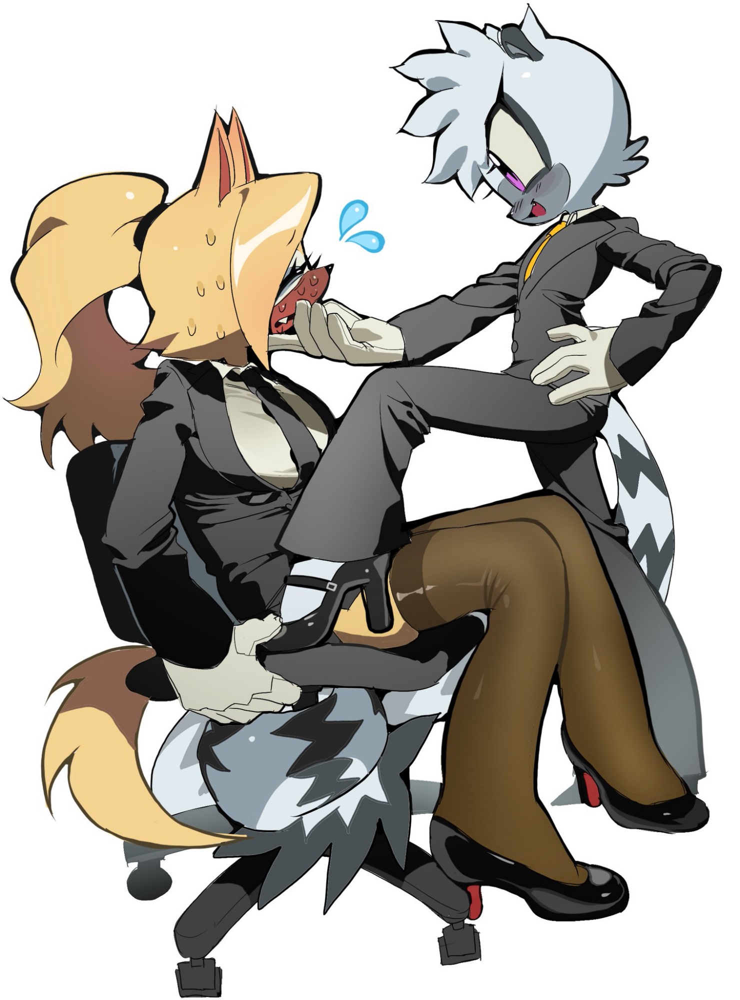safe34295 artist:thecupheadexpert1 tangle the lemur1055 whisper the wolf1088 lemur228 wolf369 20252348 alternate outfit877 blushing6180 chair76 duo10846 duo female109 eyelashes944 eyes closed4330 female5280 grey fur62 hand on another's face87 heels102 lesbian3923 long tail17 office outfit6 open mouth209 open smile412 pantyhose4 purple eyes83 shipping9141 shoes1264 side view88 sitting1913 striped tail7 suit76 sweat158 sweatdrop1112 tangle x whisper589 tie45 white background6396 white gloves86 yellow hair32