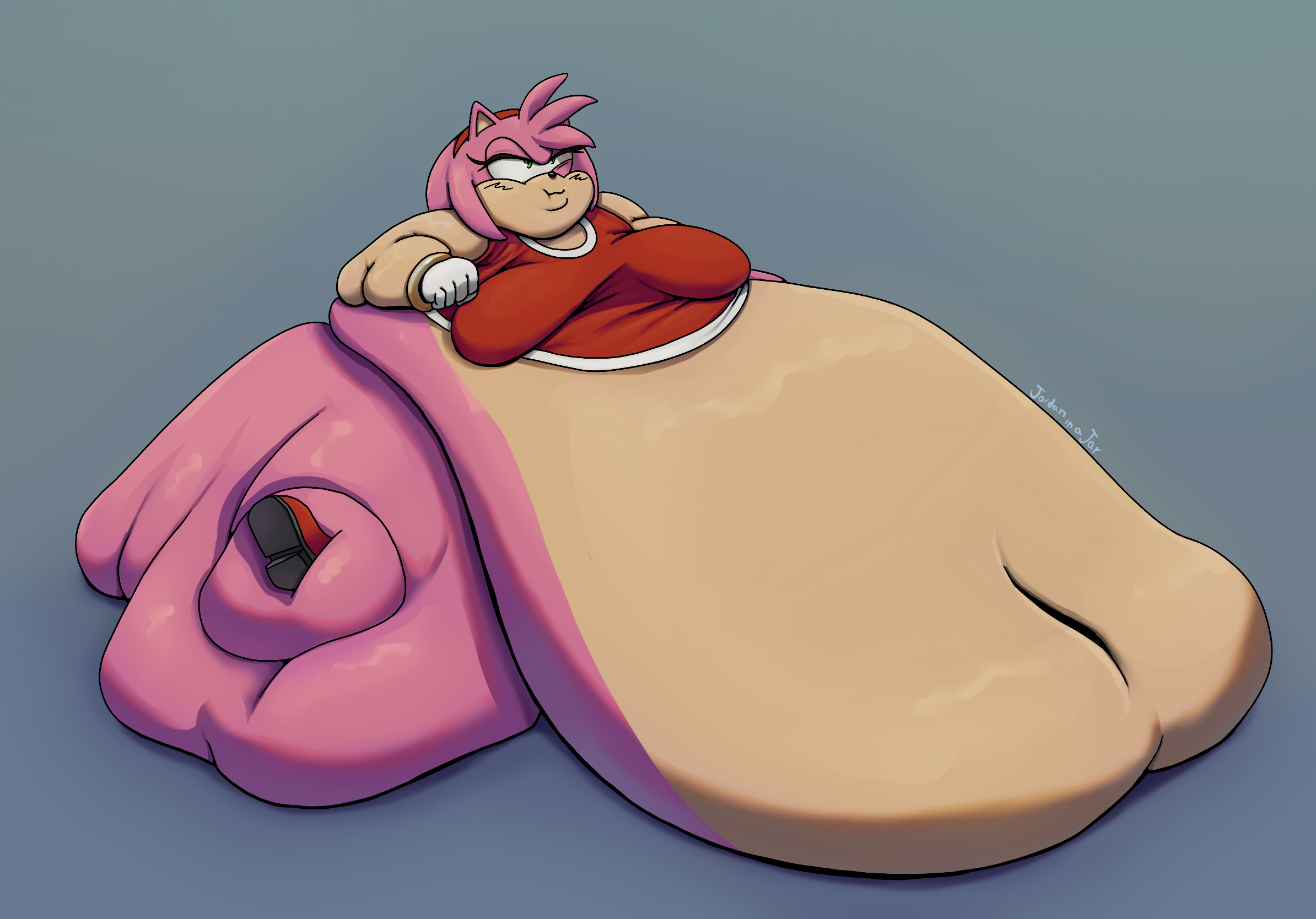 questionable462 artist:jordaninajar2 amy rose5450 hedgehog6626 20252366 amy's halterneck dress1153 annoyed106 belly button87 boots884 fat fetish64 female5337 fetish107 gradient background1293 huge breasts150 hyper belly5 hyper butt4 morbidly obese46 saggy breast2 sitting1921 solo15354 solo female274 white gloves92