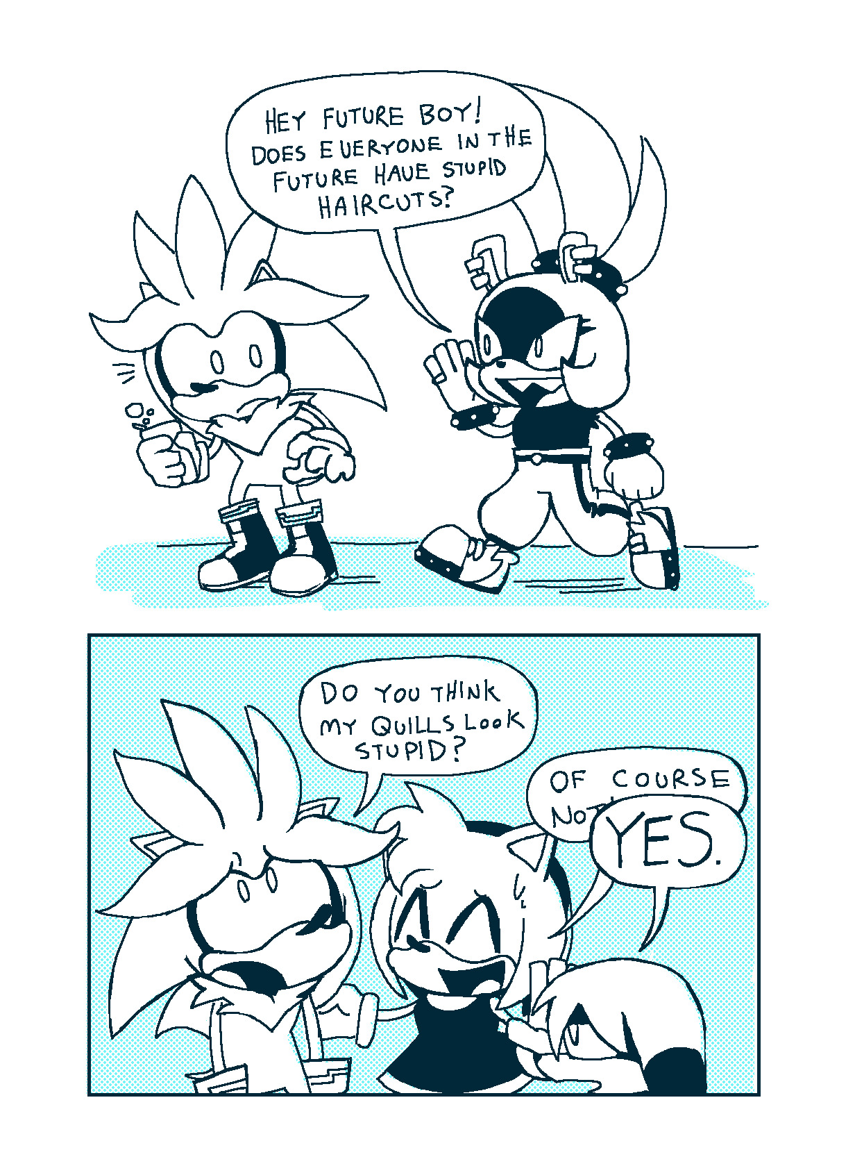 safe34875 artist:woosh-floosh1 amy rose5552 kit the fennec522 silver the hedgehog1797 20244239 dialogue2481 english text3975 frown4296 group1220 monochrome1812 mouth open5287 simple background13872 smile12842 speech bubble1250 standing9889 sweatdrop1132 talking155 text470 this will end in tears3 walking509 white background6596
