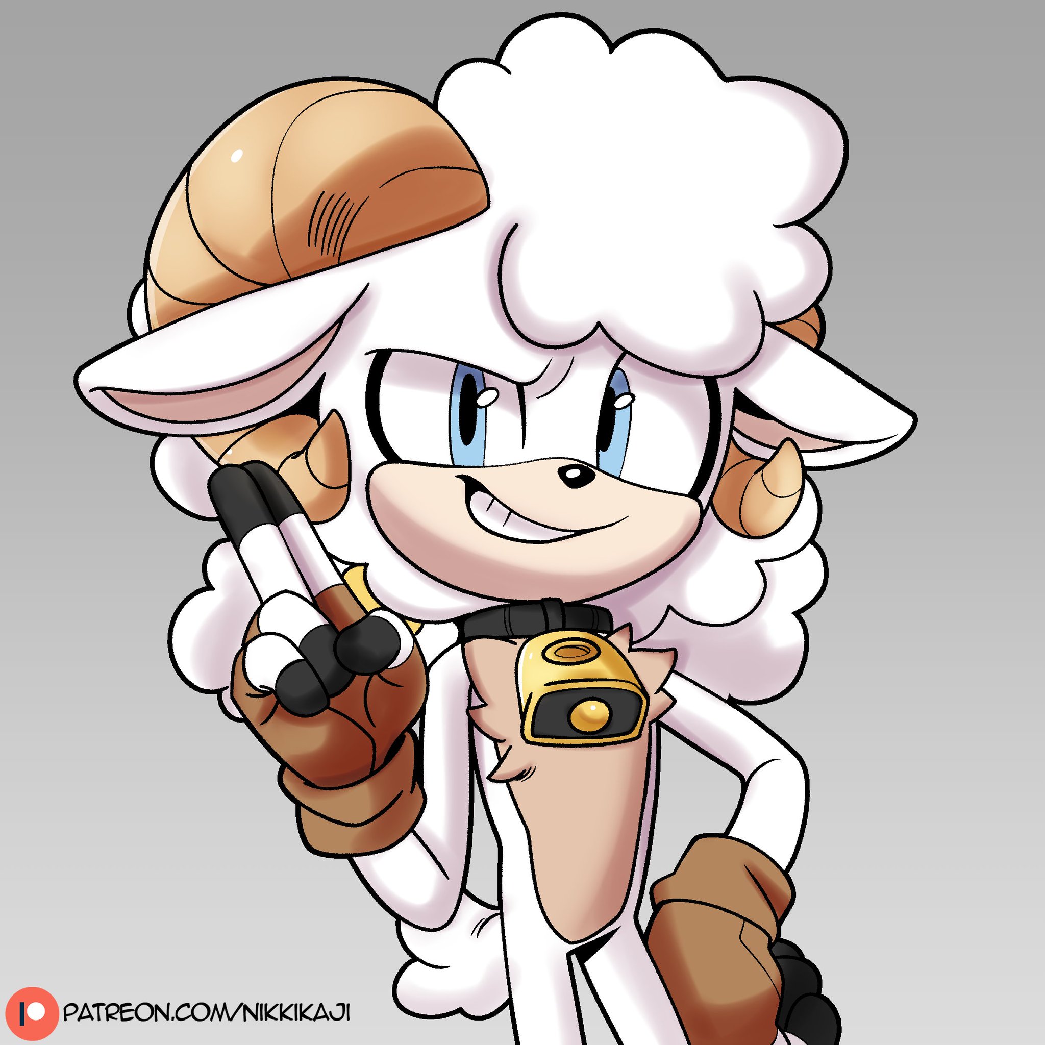 safe35452 artist:nikkikaji12 lanolin the sheep142 sheep38 20252832 alternate outfit1020 bell17 brown gloves76 chest fluff722 collar76 fingerless gloves719 gender swap915 gloves1686 grey background2262 hand on hip903 looking at viewer7643 simple background14147 smile13115 smiling at viewer764 solo16035 standing10096