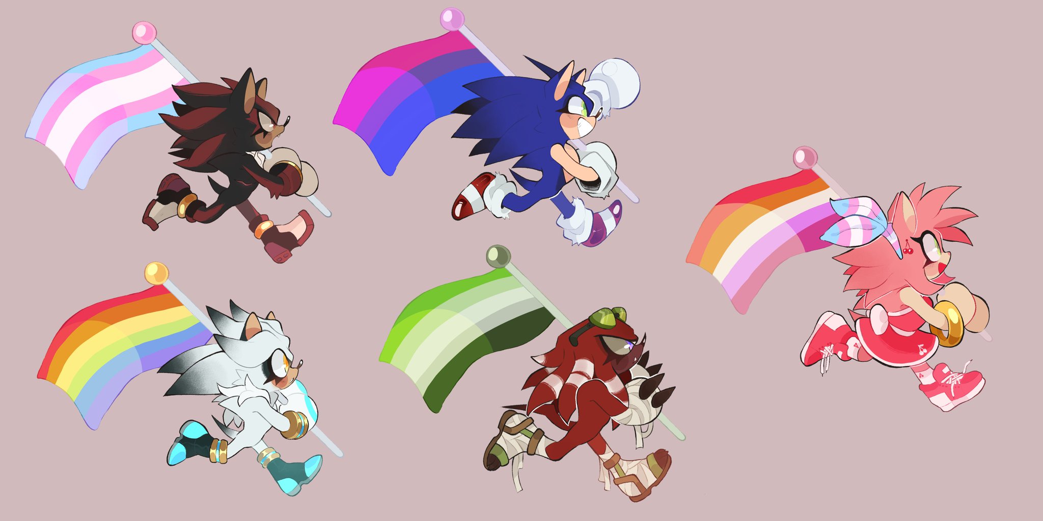 safe35452 artist:dirtyteeths46 amy rose5593 knuckles the echidna2173 shadow the hedgehog5776 silver the hedgehog1826 sonic the hedgehog12676 echidna709 hedgehog6818 20232459 alternate outfit1020 aromantic75 aromantic pride55 bisexual258 bisexual pride331 eyelashes1005 flag474 gay4964 gay pride247 grey background2262 group1254 holding something3099 lesbian3957 lesbian pride474 odd shoes9 pride1341 pride flag744 running567 scar133 side view122 smile13115 top surgery scars654 trans boy shadow9 trans female714 trans girl amy2 trans male905 trans pride575 transgender1601
