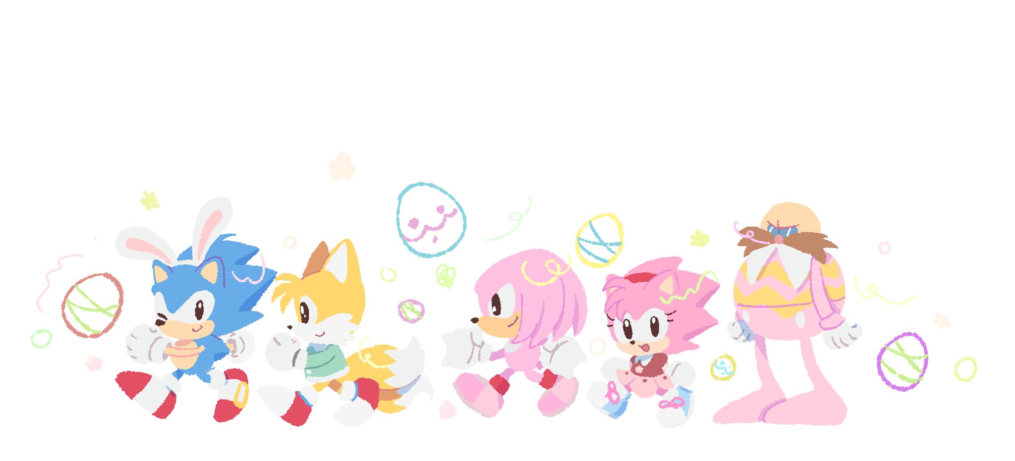 safe35587 artist:neku_646611101 amy rose5603 knuckles the echidna2177 miles "tails" prower8902 robotnik706 sonic the hedgehog12756 human1973 20252936 alternate outfit1030 classic amy180 classic knuckles124 classic robotnik71 classic sonic931 classic tails562 easter14 egg23 group1258 rabbit ears2 smile13176 standing10136 walking519