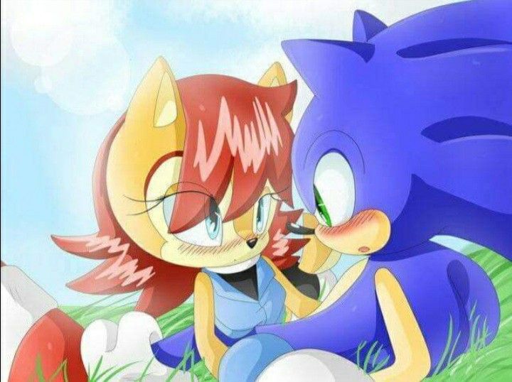 safe36433 artist:kiipuonranningu7 sally acorn1253 sonic the hedgehog13161 chipmunk620 hedgehog7270 blushing6437 daytime843 deactivated deviantart account6 duo11902 female6047 grass718 looking at each other2621 lying down504 male6344 sally x sonic310 sally's ringblader outfit194 shipping9631 straight1344