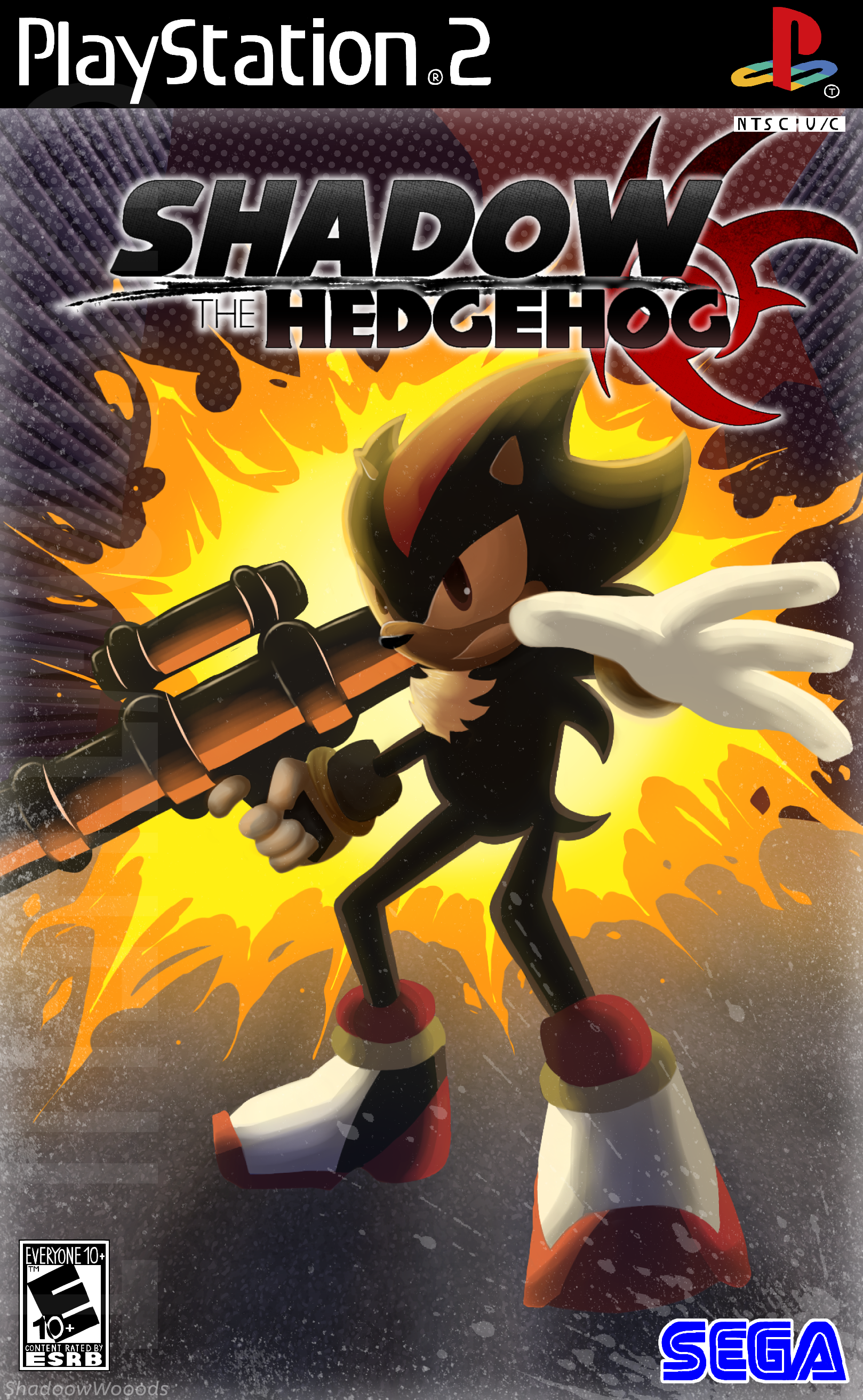 safe36682 artist:shadoowwooods1 shadow the hedgehog6099 hedgehog7349 20244354 bazooka21 box art64 clenched teeth1857 explosion51 holding something3326 male6444 ps22 redraw1346 sega logo67 shadow the hedgehog (video game)137 shadow's logo49 solo16746 solo male471 standing10511