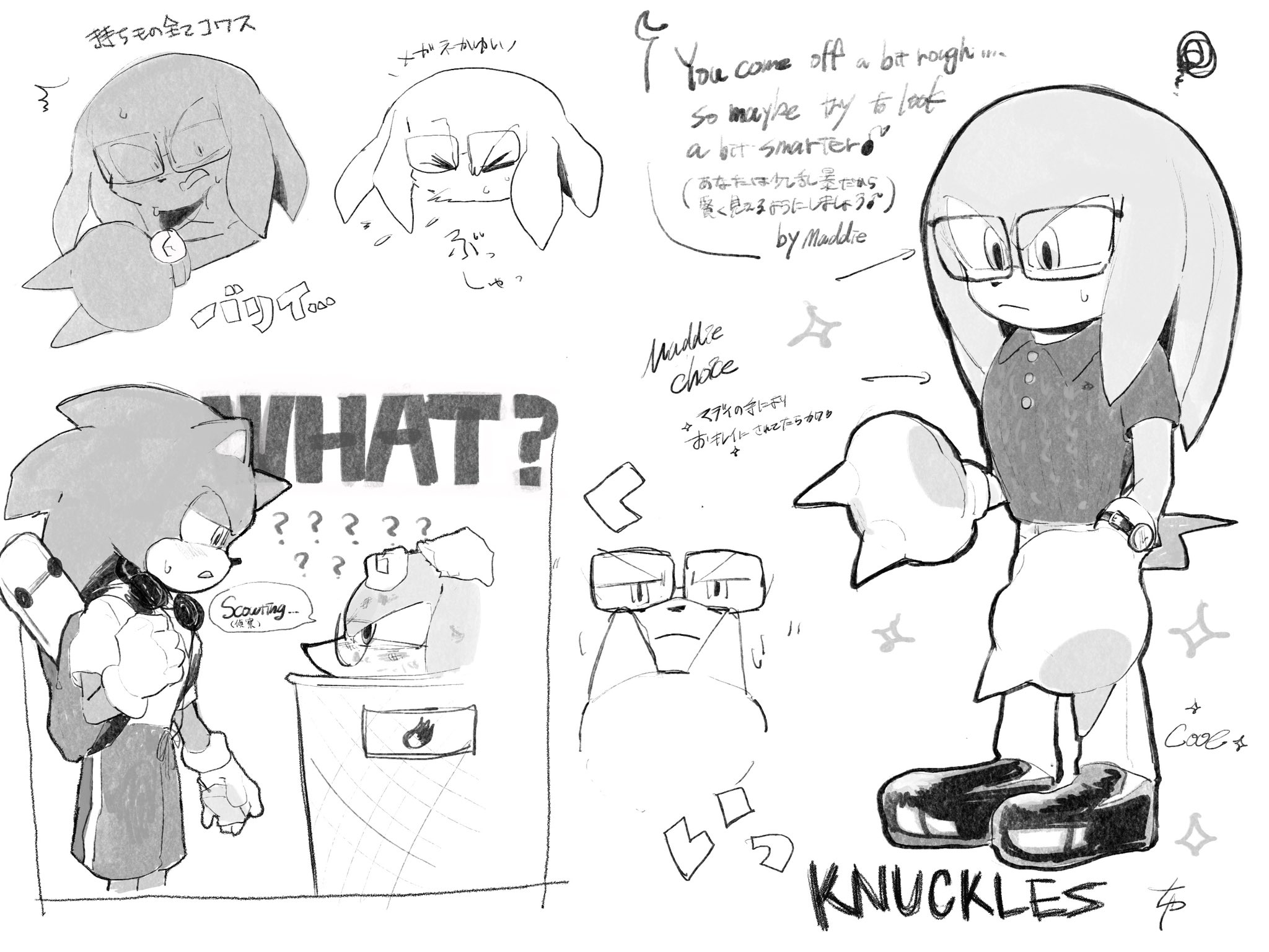 safe36769 artist:c_blue_justice3 knuckles the echidna2250 sonic the hedgehog13353 echidna775 hedgehog7373 20253423 alternate outfit1116 clothes1634 duo12057 english text4190 fully clothed192 glasses399 greyscale889 japanese text421 looking at each other2661 looking at them2090 male6467 monochrome2103 school3 simple background14994 standing10547 watch10 white background7337