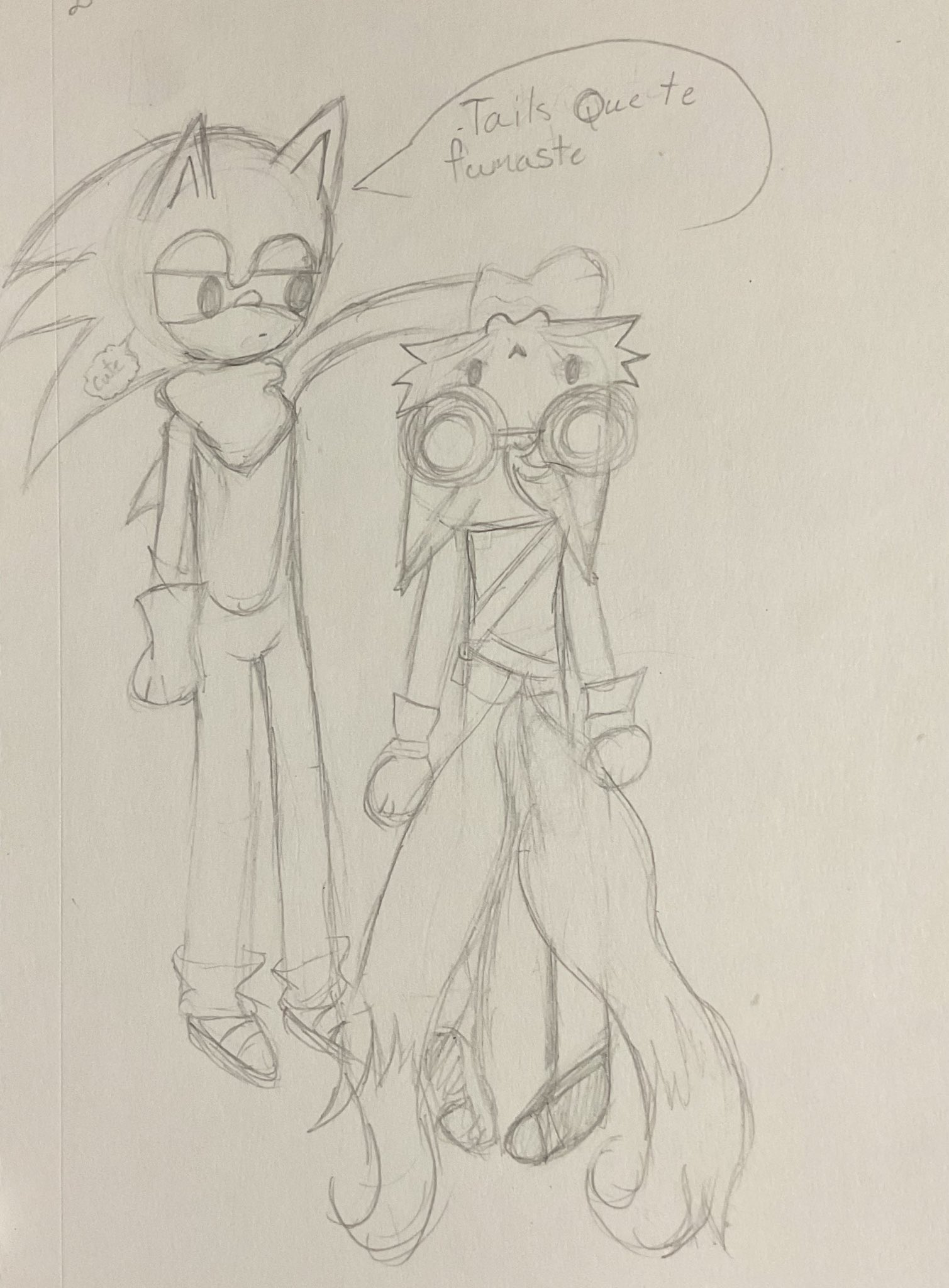 safe36863 artist:powdertheferret2 miles "tails" prower9139 sonic the hedgehog13416 202685 :3206 aged up400 alternate universe816 biting40 dialogue2595 duo12115 frown4560 gay5127 line art1571 monochrome2120 pencilwork440 shipping9766 sonic boom (tv)522 sonic x tails1253 spanish text54 standing10574 text639 traditional media1566