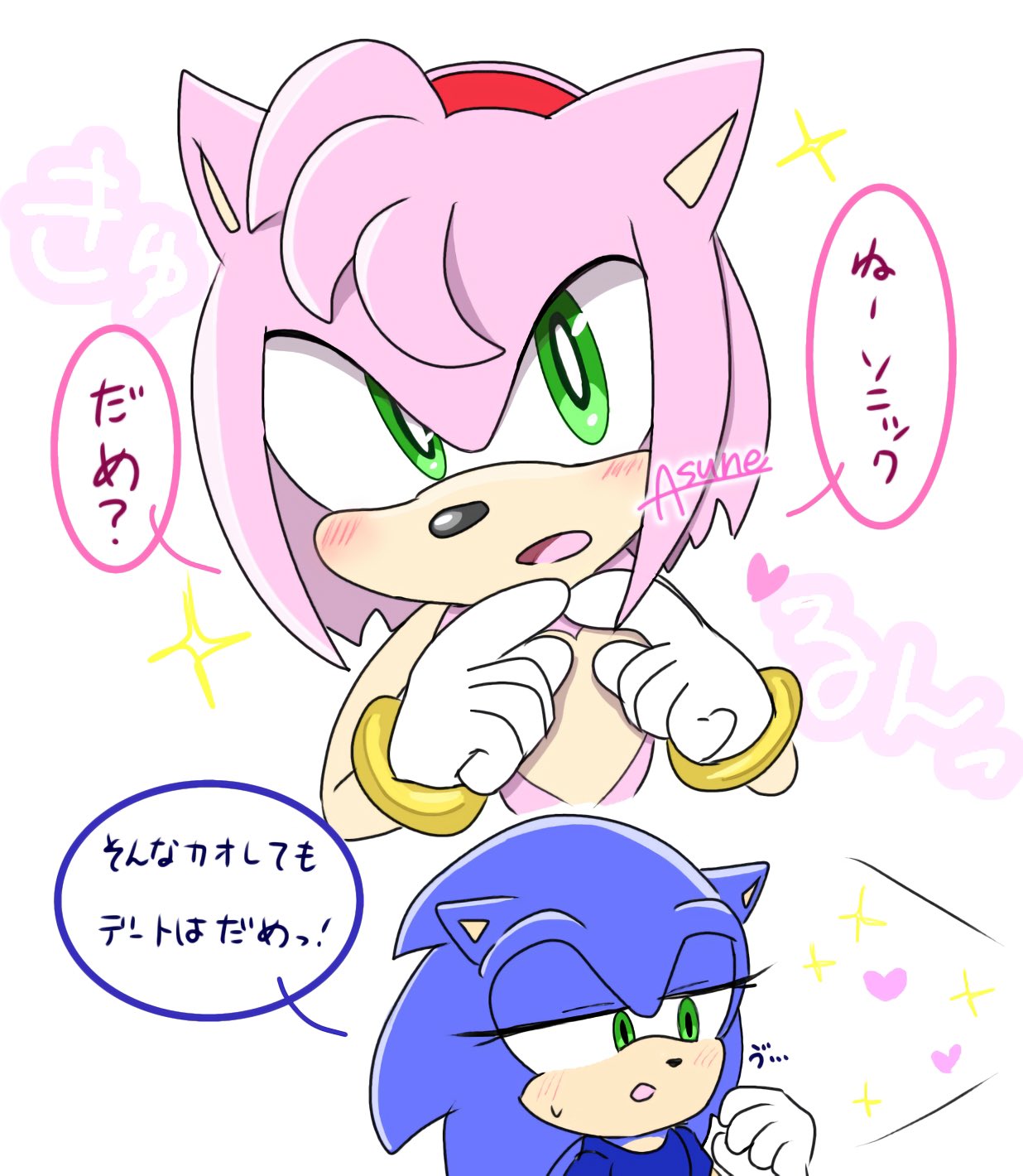 safe37058 artist:asune_snare68 amy rose5747 sonic the hedgehog13501 20253536 amy x sonic258 blushing6538 comic724 duo12207 gender swap947 heart3182 japanese text477 lidded eyes3969 mouth open5621 r63 shipping84 shipping9797 simple background15187 speech bubble1410 straight1430 white background7432