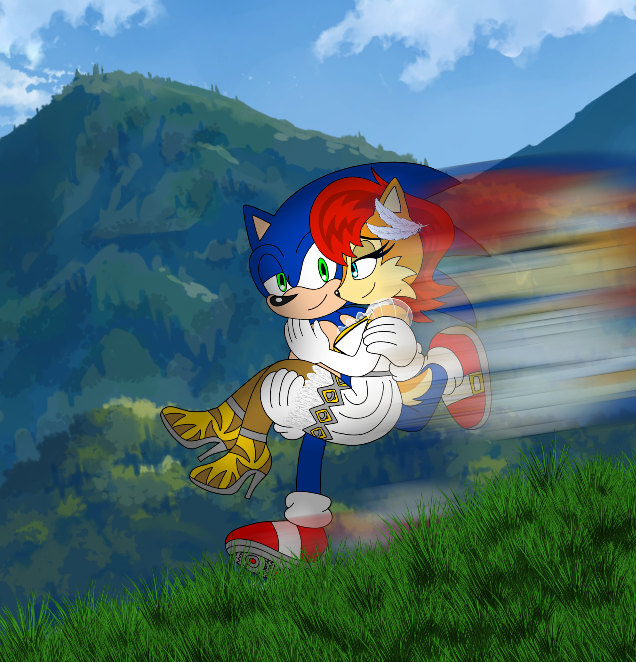 Wanted to make a small tribute to Project 06, so i made Sonic carry Sally as Elise across a field near mountains~