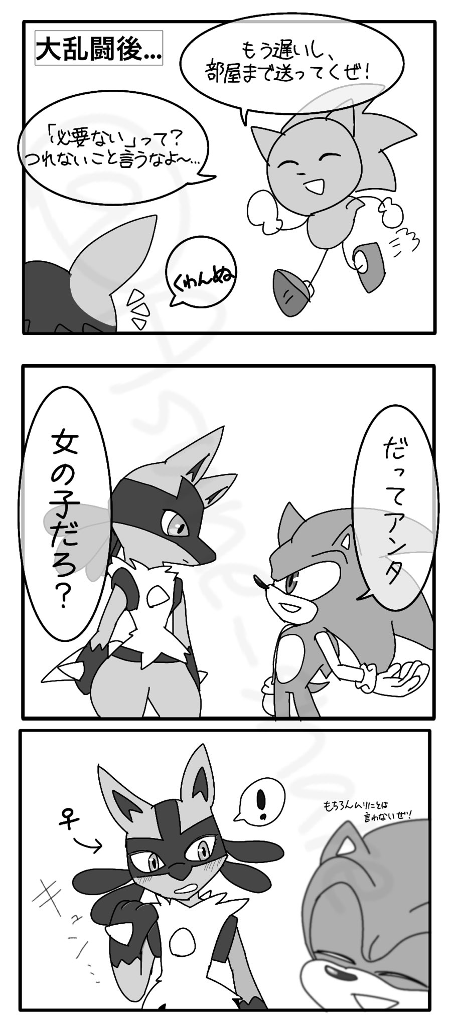 safe37078 artist:asune_snare82 sonic the hedgehog13514 20244399 blushing6539 comic731 crossover927 duo12221 eyes closed4660 greyscale913 japanese text490 looking at each other2689 looking at them2132 lucario1 monochrome2148 mouth open5629 pokemon112 simple background15198 smile13905 speech bubble1415 standing10660 super smash brothers15 white background7441