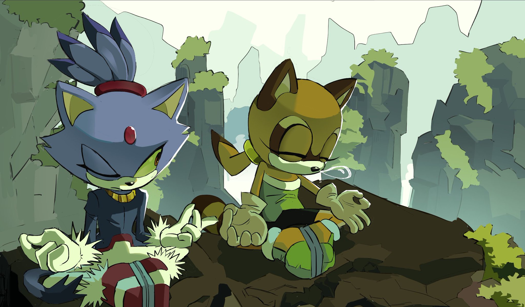 safe37495 artist:rocketrrush6 blaze the cat3611 marine the raccoon155 cat2732 raccoon90 2026214 abstract background7043 daytime893 duo12387 eyes closed4698 female6264 frown4668 legs crossed77 meditation4 mountain57 one eye closed747 outdoors1579 sitting2316 sleep bubble2 sleeping428