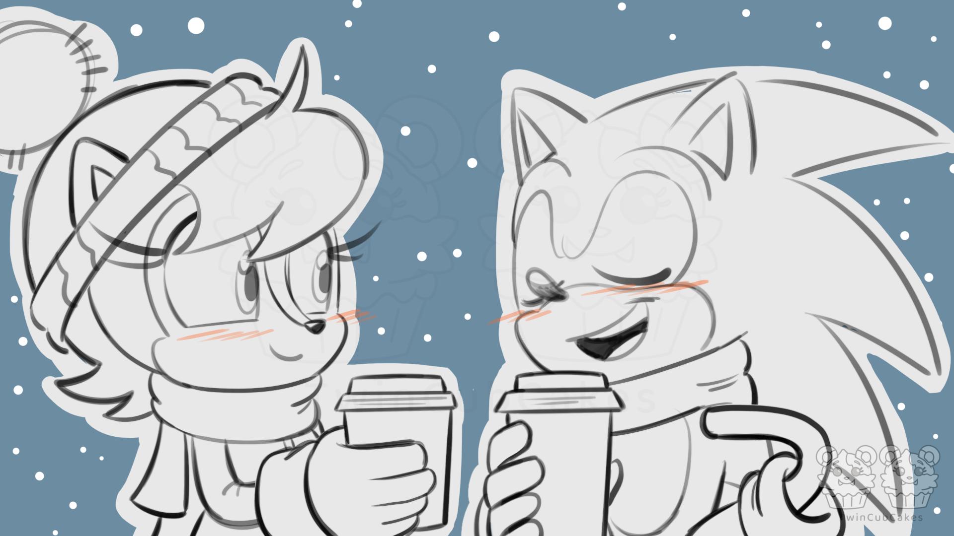 safe37975 artist:twincubcakes9 sally acorn1388 sonic the hedgehog13899 chipmunk756 hedgehog7635 2026300 alternate outfit1268 blushing6710 drink141 duo12649 female6562 greyscale1004 holding something3625 hot drink6 male6873 sally x sonic401 scarf561 shipping10074 snow175 straight1578 talking209 watermark548 winter outfit134