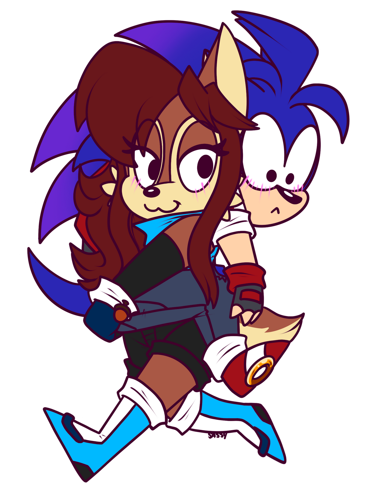 safe38188 artist:sassymelvin4 sally acorn1436 sonic the hedgehog14003 chipmunk805 hedgehog7683 2026331 blank background14 blushing6743 carrying them781 clothes1825 duo12762 female6693 fully clothed244 gloves1772 male6942 sally x sonic433 shipping10151 shirt776 shorts603 smile14464 straight1637 vest49 walking574