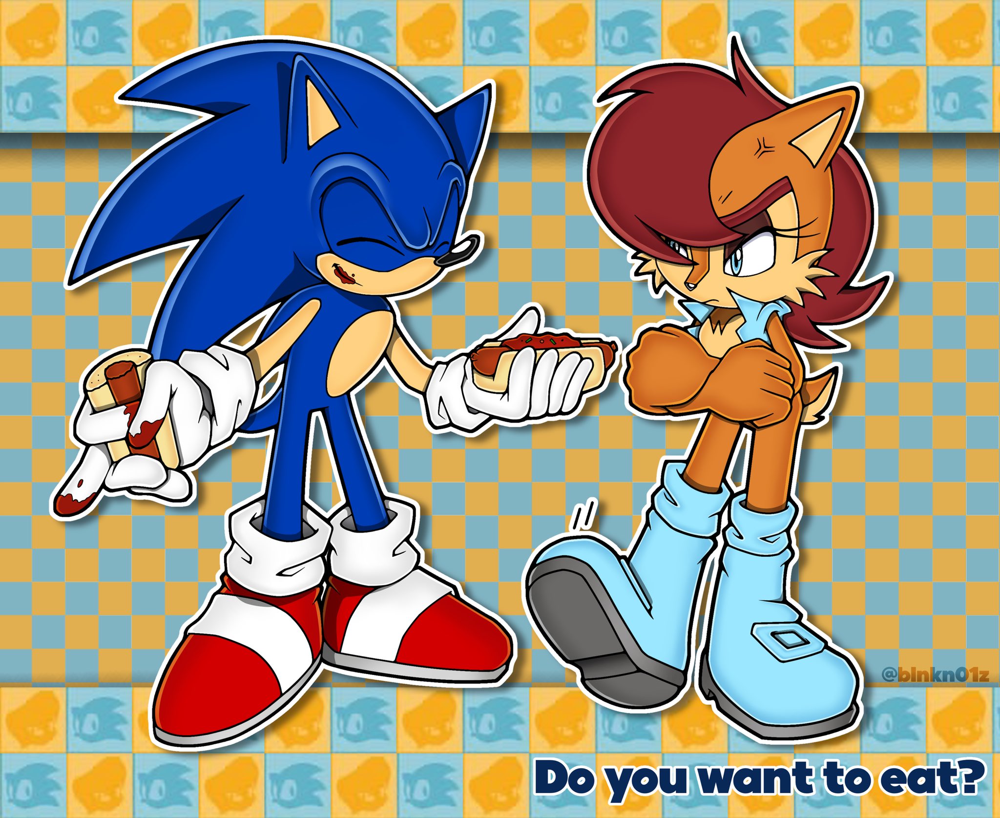 safe38299 artist:pensforpenc1ls4 sally acorn1460 sonic the hedgehog14056 chipmunk829 hedgehog7731 2026375 abstract background7152 chili dog153 dialogue2710 duo12831 eating162 english text4437 female6735 food502 holding something3713 hot dog17 male6993 offering1 redraw1398 sally x sonic449 sally's vest and boots227 shipping10213 straight1667