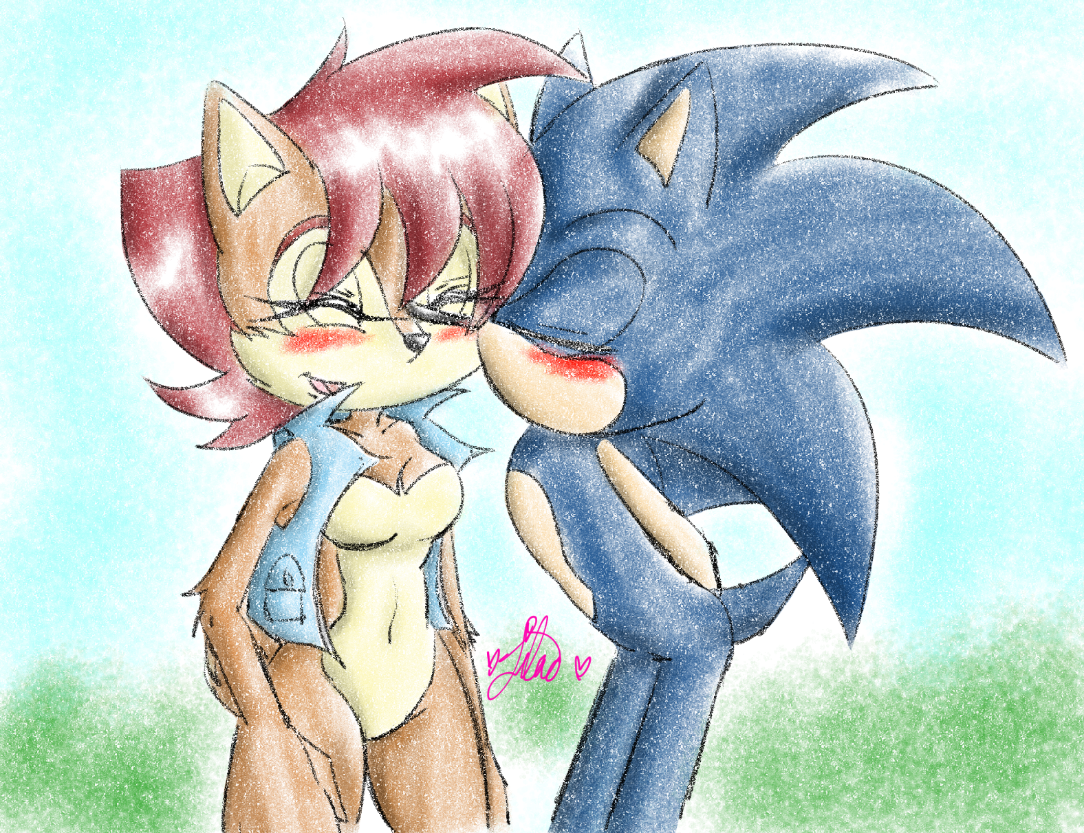 safe38540 artist:chaotixbat1 sally acorn1515 sonic the hedgehog14155 chipmunk889 hedgehog7799 20221490 blushing6824 daytime987 duo12981 female6878 kiss1119 kiss on cheek440 male7077 pencilwork447 sally x sonic481 sally's vest and boots251 shipping10301 smile14706 straight1715
