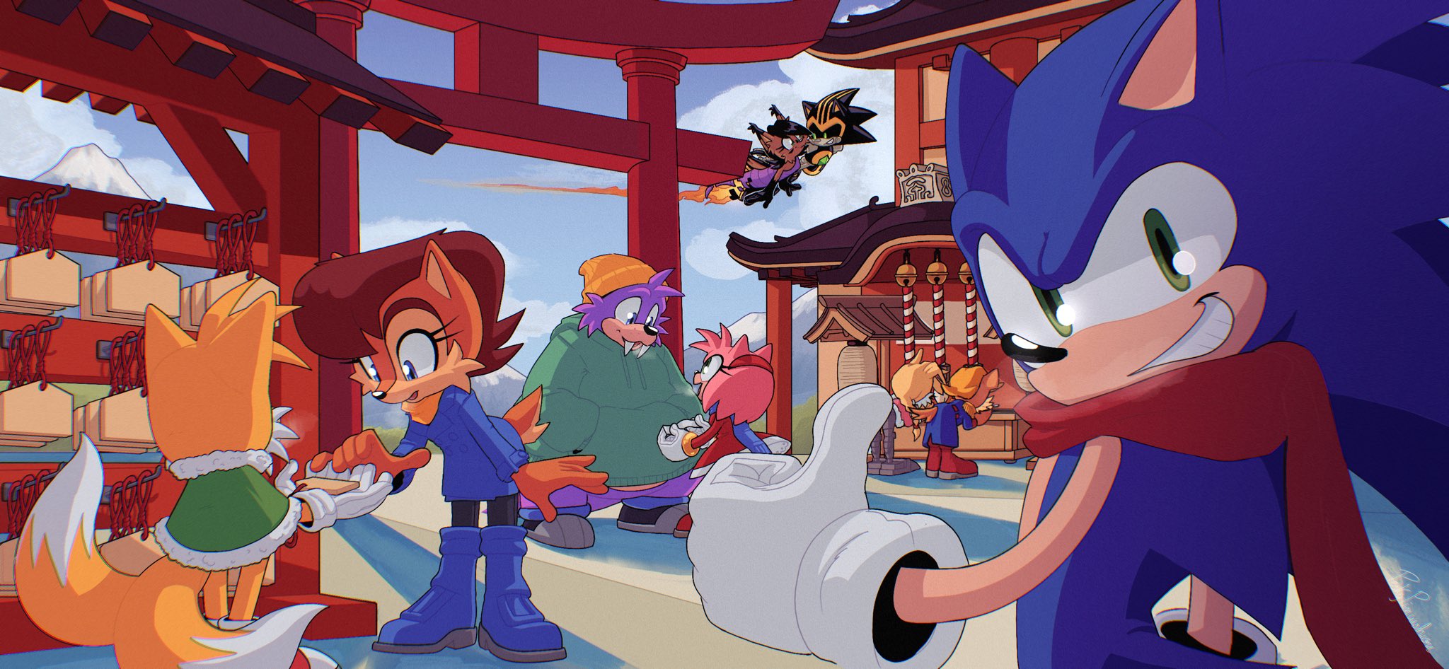 In the cool winter air, Sonic and the Freedom Fighters pause briefly to celebrate Hatsumōde, enjoying a peaceful moment. With hope for the future ahead, they welcome the new year together.