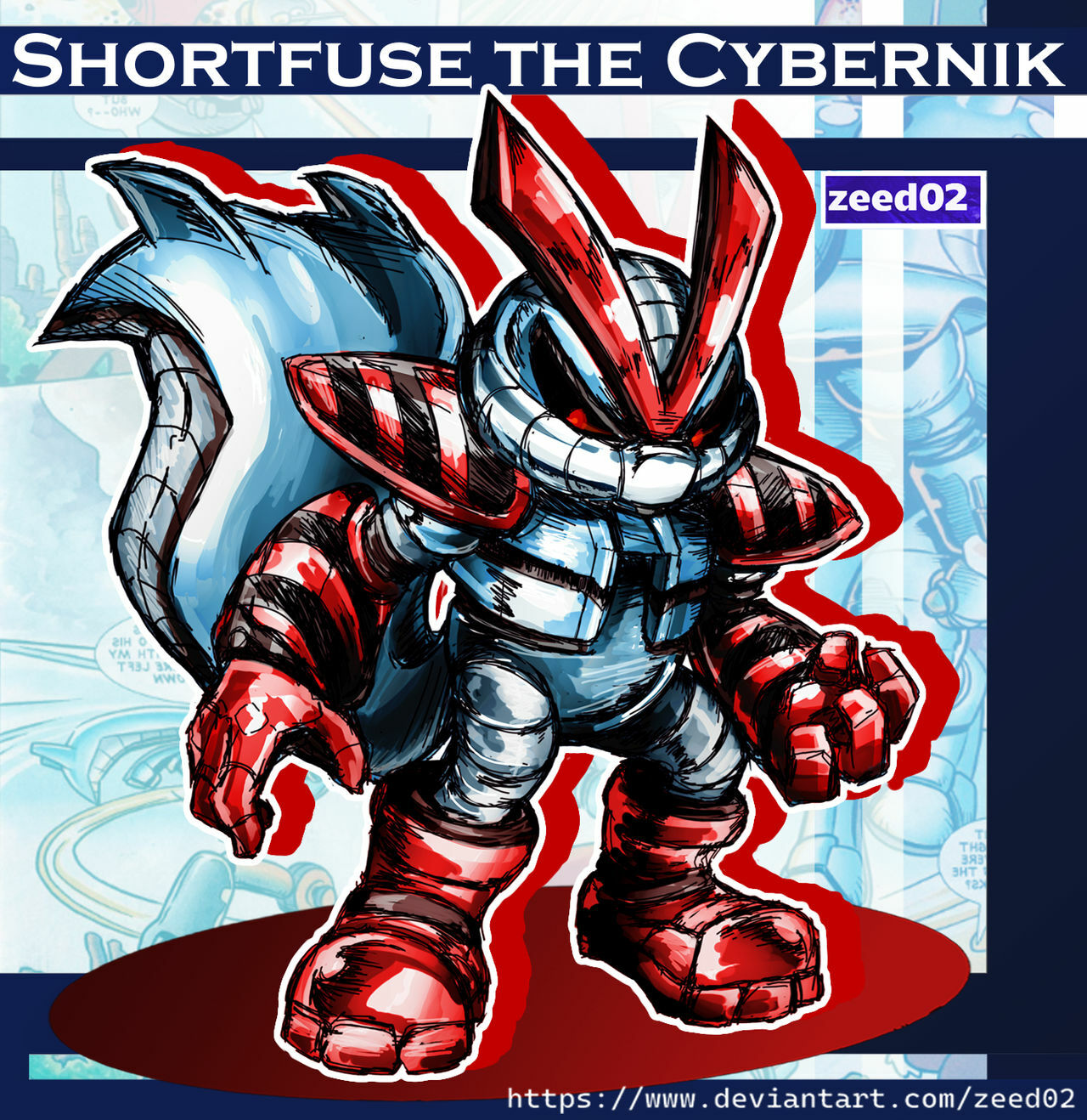 A drawing of Shortfuse the Cybernik, this is a character belonging to the Sonic the Comic continuity of the British publisher Fleetway , He was originally a squirrel named Shorty the Squirrel, But Doctor Ivo Robotnik cybernetically modified him to fuse him with a mechanical armor. ( Full Color )