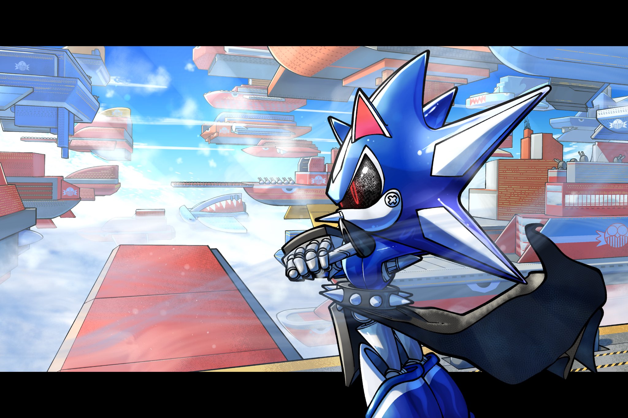 safe39065 artist:tighesam15 metal sonic554 neo metal sonic40 sonic heroes181 20244559 abstract background7292 alternate version700 arms folded656 battleship2 black sclera594 border607 clouds1003 daytime1027 egg fleet16 outdoors1780 robot1123 solo17916 standing11418