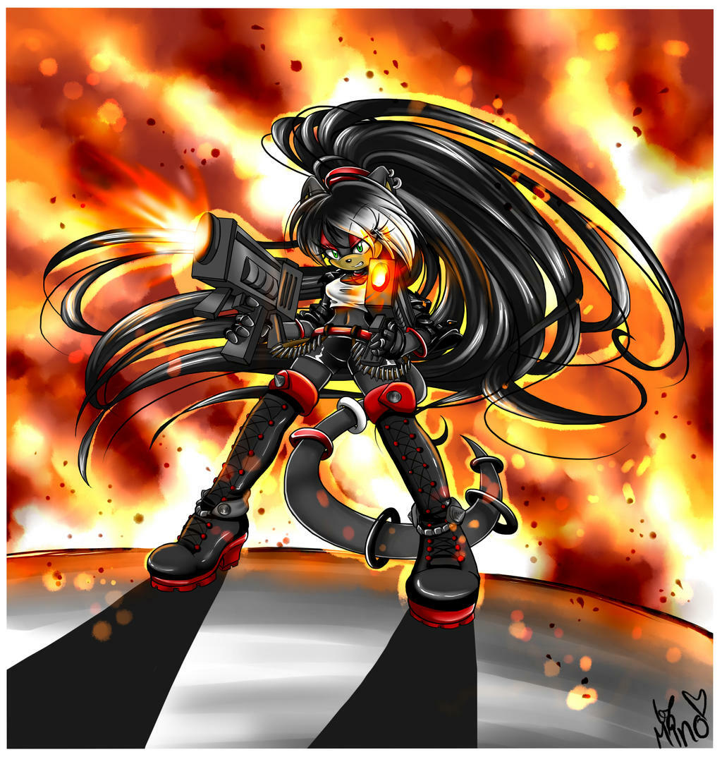 it´s her character Zero the Cat. It´s the first time i have drawn her, and i LOOVE her design! she is probably the coolest sonic oc i have seen so far! :squee: i had much fun drawing her hair and designing her outfit! :heart: and the background actually looks good to me this time! fire isn´t easy to draw, but i love how it turned out! X3