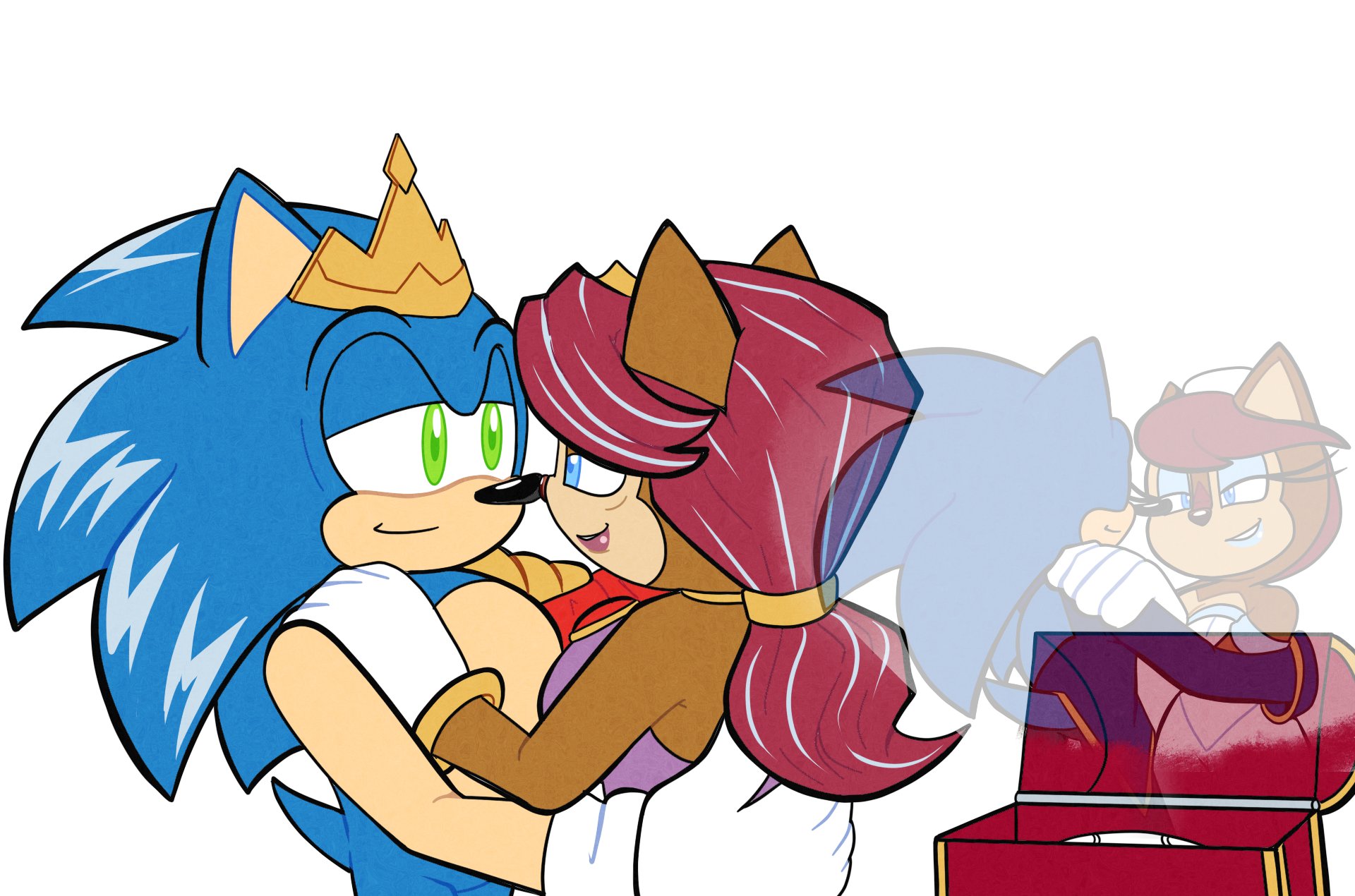 safe39293 artist:tvict10121 sally acorn1669 sonic the hedgehog14490 chipmunk1049 hedgehog8062 20221530 alternate universe954 crown106 dancing154 duo13436 female7143 king sonic42 looking at each other2933 male7260 older491 queen sally acorn32 sally x sonic573 shipping10625 simple background16651 straight1900 white background8185