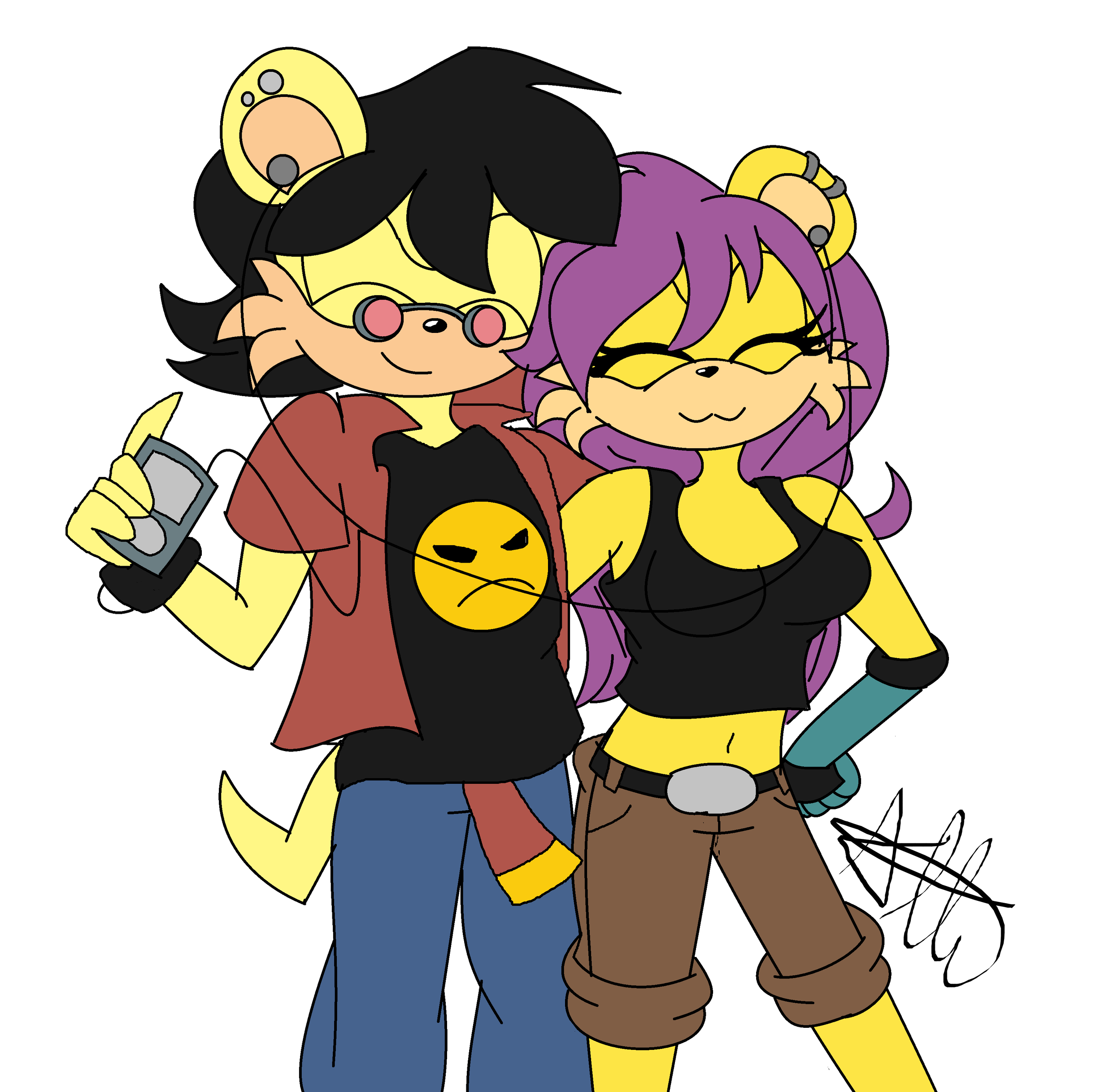 safe39460 artist:sonicgirlify1 ash mongoose8 mina mongoose111 mongoose64 2018672 clothes2015 duo13537 eyes closed5023 female7250 fully clothed266 glasses482 headphones112 holding something4040 male7390 mina x ash3 phone149 shipping10703 simple background16746 smile15455 straight1963 white background8234