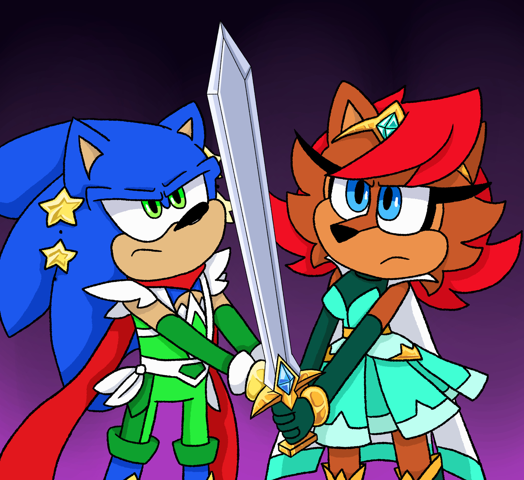 safe39808 artist:kittytale6 sally acorn1763 sonic the hedgehog14690 chipmunk1161 hedgehog8379 2026883 clothes2055 cosplay328 crossover982 duo13692 female7388 holding something4126 magical girl1 male7636 sally x sonic638 scar194 shipping10791 simple background16971 straight2016 sword247 tiara16 weapon226