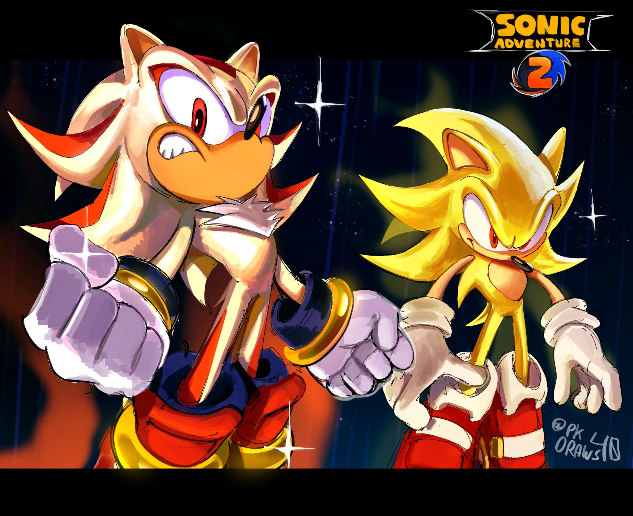 safe39867 artist:pk_draws_404 shadow the hedgehog6788 sonic the hedgehog14724 super shadow176 super sonic629 sonic adventure 2337 2026905 clenched fists716 clenched teeth2031 duo13754 flying1365 frown5121 mid-air911 signature6458 soap shoes179 space125 sparkles1106 star (sky)527 super form1052