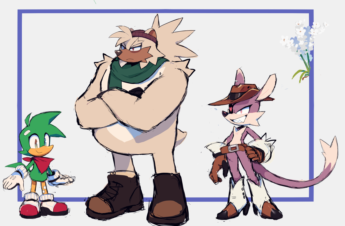 safe39974 artist:motobugg22 bark the polar bear69 bean the dynamite81 nack the weasel124 20244663 arm fluff174 arms folded692 bandana317 beanabeties3 beanie69 belt466 boots1011 cute5911 dark bags under eyes22 flower733 frown5160 gloves1831 hand on hip1179 hat510 heels117 lidded eyes4537 looking offscreen4886 scarf621 shoes1383 shoulder fluff65 smile15897 socks892 standing11777 team hooligan15 trio1978