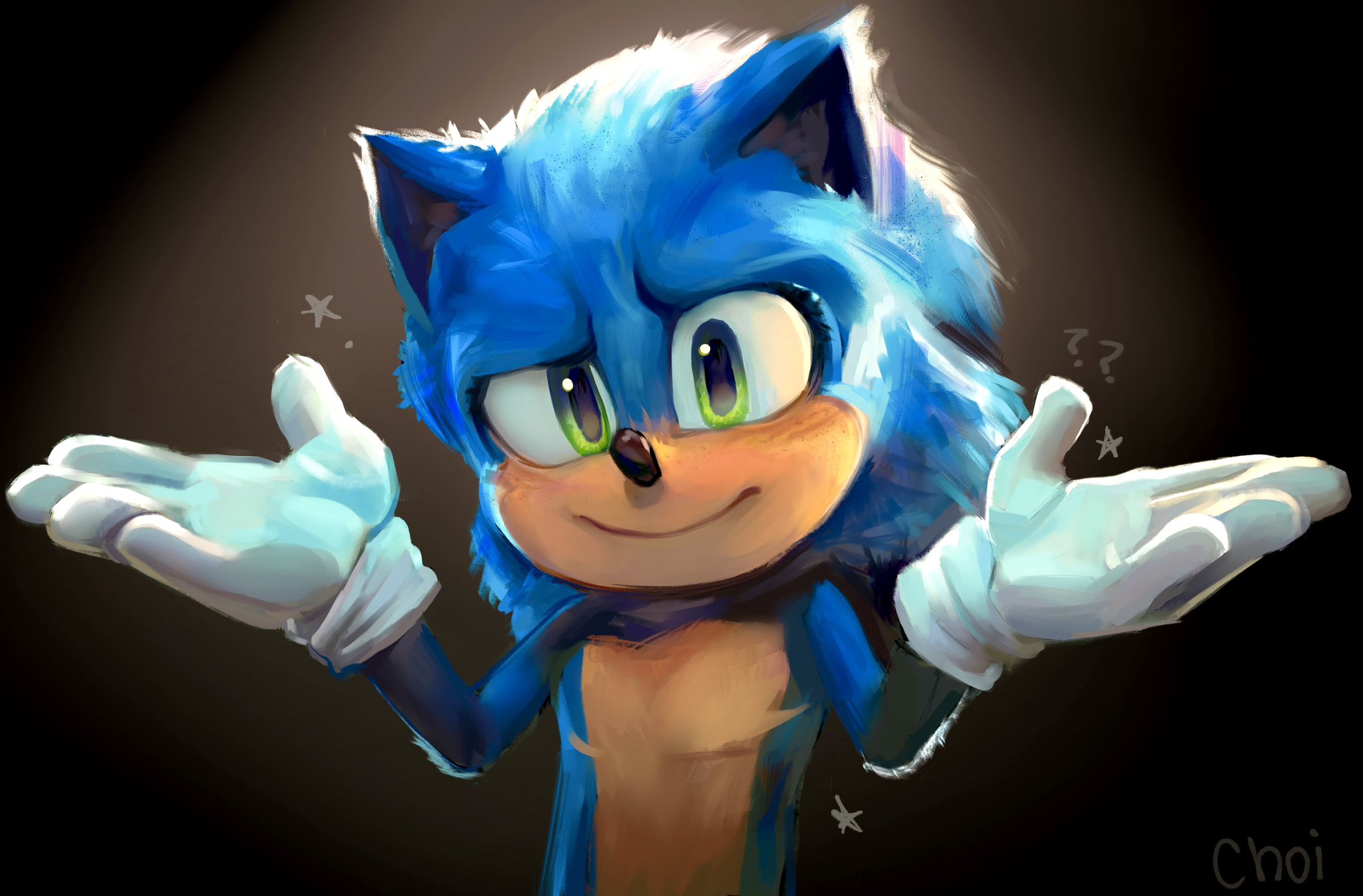 safe40076 artist:astrxchoi8 sonic the hedgehog14818 sonic the hedgehog 3 (film)180 20254376 freckles224 gradient background1872 lineless582 looking at viewer9381 question mark447 scar199 shrugging62 signature6490 smile15976 solo18603 star (symbol)823 top surgery scars690 trans male949 transgender1659