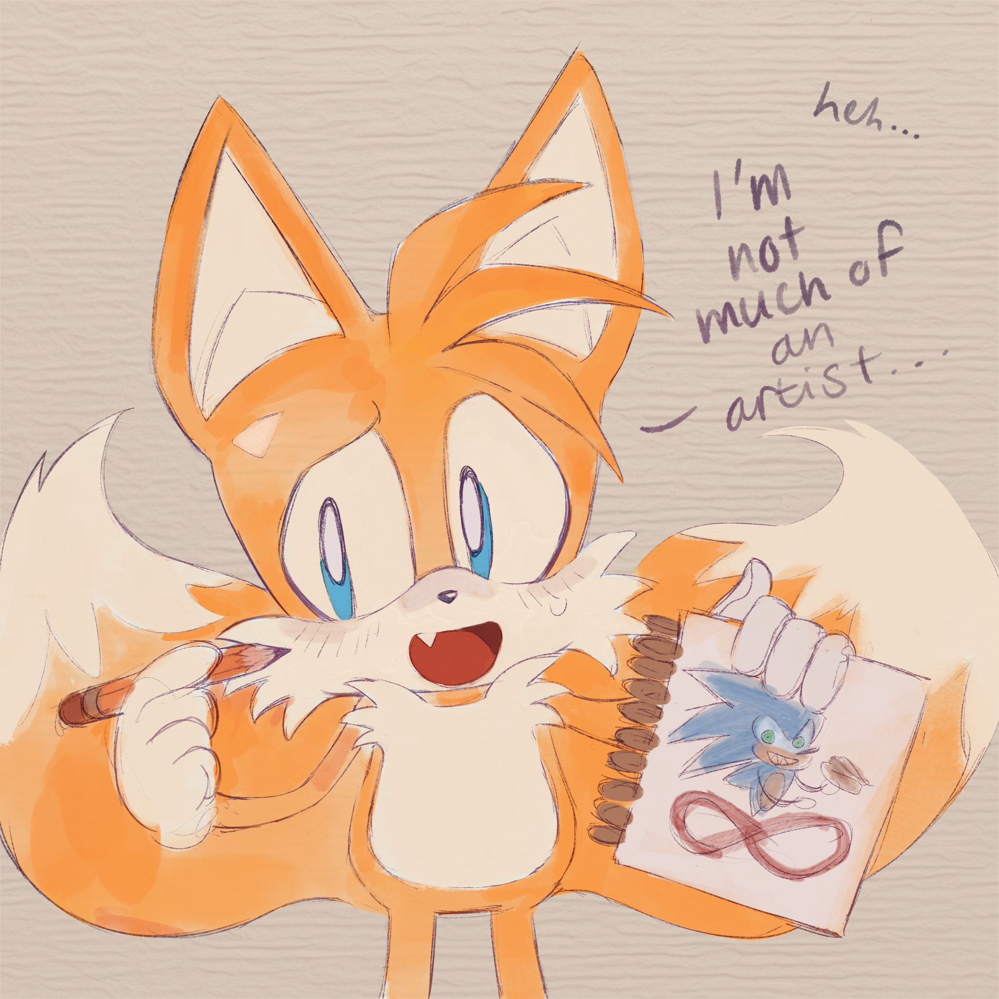 safe40419 artist:ifijustfollowyou6 miles "tails" prower9838 fox2866 20261041 dialogue2996 drawing32 english text4907 grey background2699 headcanon179 holding something4331 male8001 mouth open6773 notepad15 one fang1401 pencil22 simple background17418 solo18875 standing11937 sweatdrop1376 text1194