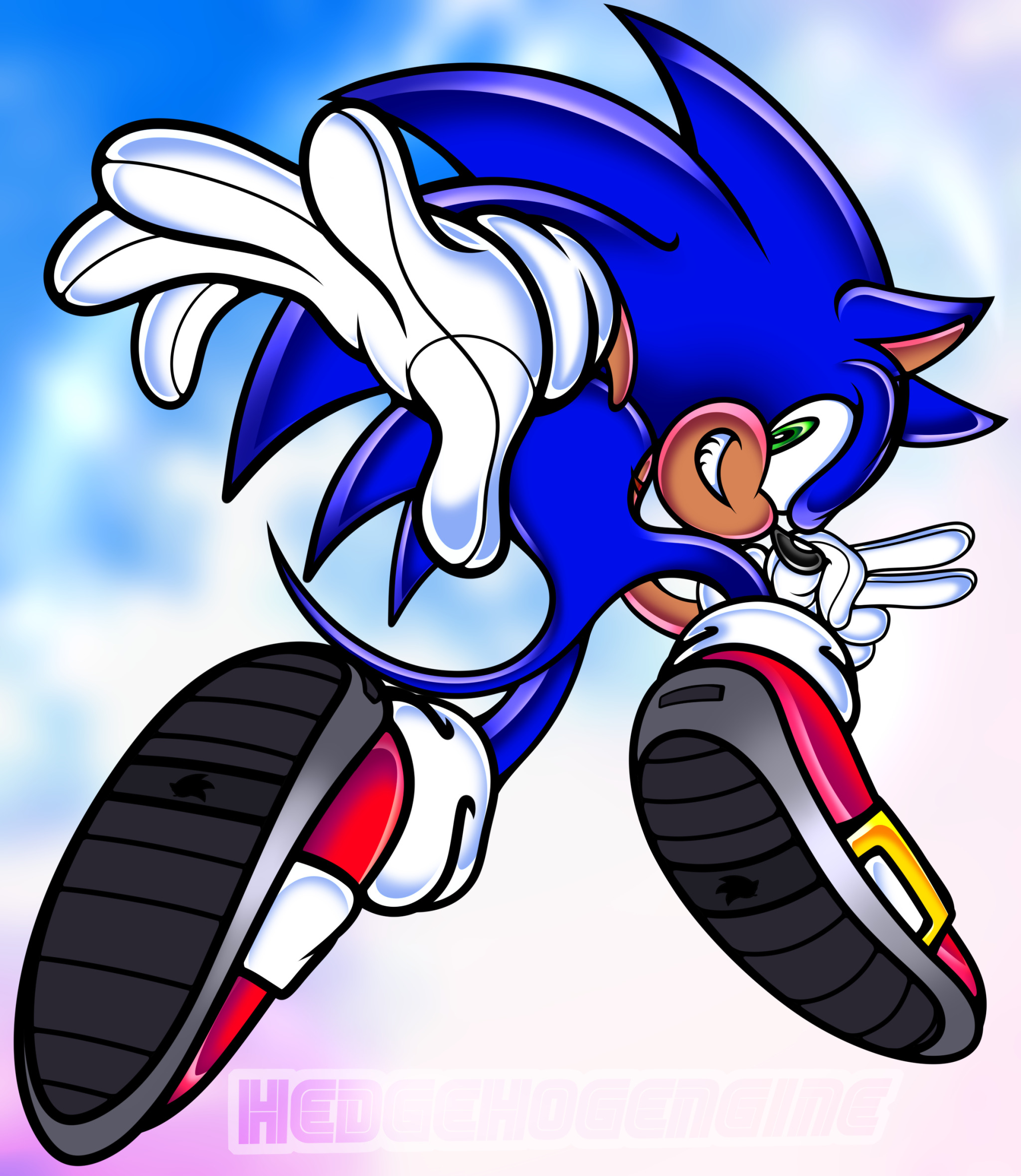 safe40594 artist:hedgehogenglne1 sonic the hedgehog15035 20244715 clouds1103 looking at viewer9683 looking back806 looking back at viewer466 mid-air954 posing515 reaching towards the viewer317 signature6607 sky background29 smile16395 smiling at viewer1778 solo19047 style emulation329 tan skin144 treads432 uekawa style335 v sign1190 watermark823